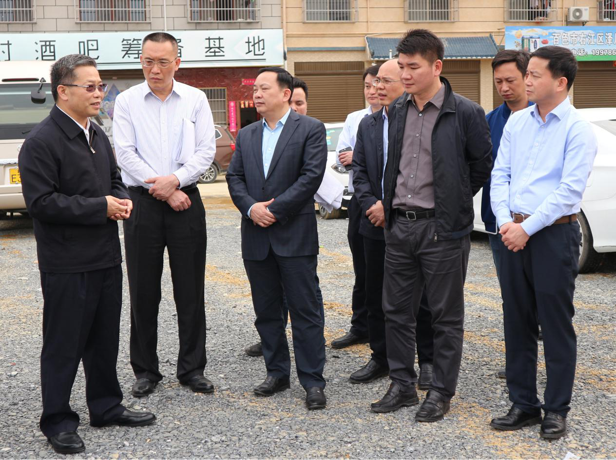 ??? 自治區(qū)政協(xié)副主席、百色市委書記、百色市人大常委會(huì)主任彭曉春一行到公司負(fù)責(zé)的棚戶區(qū)改造項(xiàng)目檢查工作進(jìn)展情況,百色市委秘書長(zhǎng)藍(lán)樹東、右江區(qū)委書記黃永才、公司經(jīng)營管理指導(dǎo)工作小組組長(zhǎng)李勇春等領(lǐng)導(dǎo)陪同。?(通訊員:金彥彤)