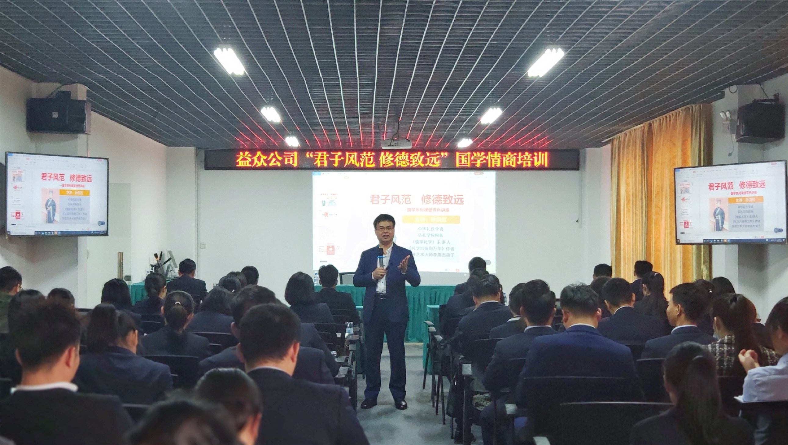 ????????為進一步提升公司員工職業(yè)素養(yǎng),加深對傳統(tǒng)文化的了解和學(xué)習(xí),近日,益眾公司開展“君子風(fēng)范 修德致遠”國學(xué)情商培訓(xùn),公司百余名員工在老鄉(xiāng)家園辦公區(qū)3樓會議室參加了培訓(xùn)。