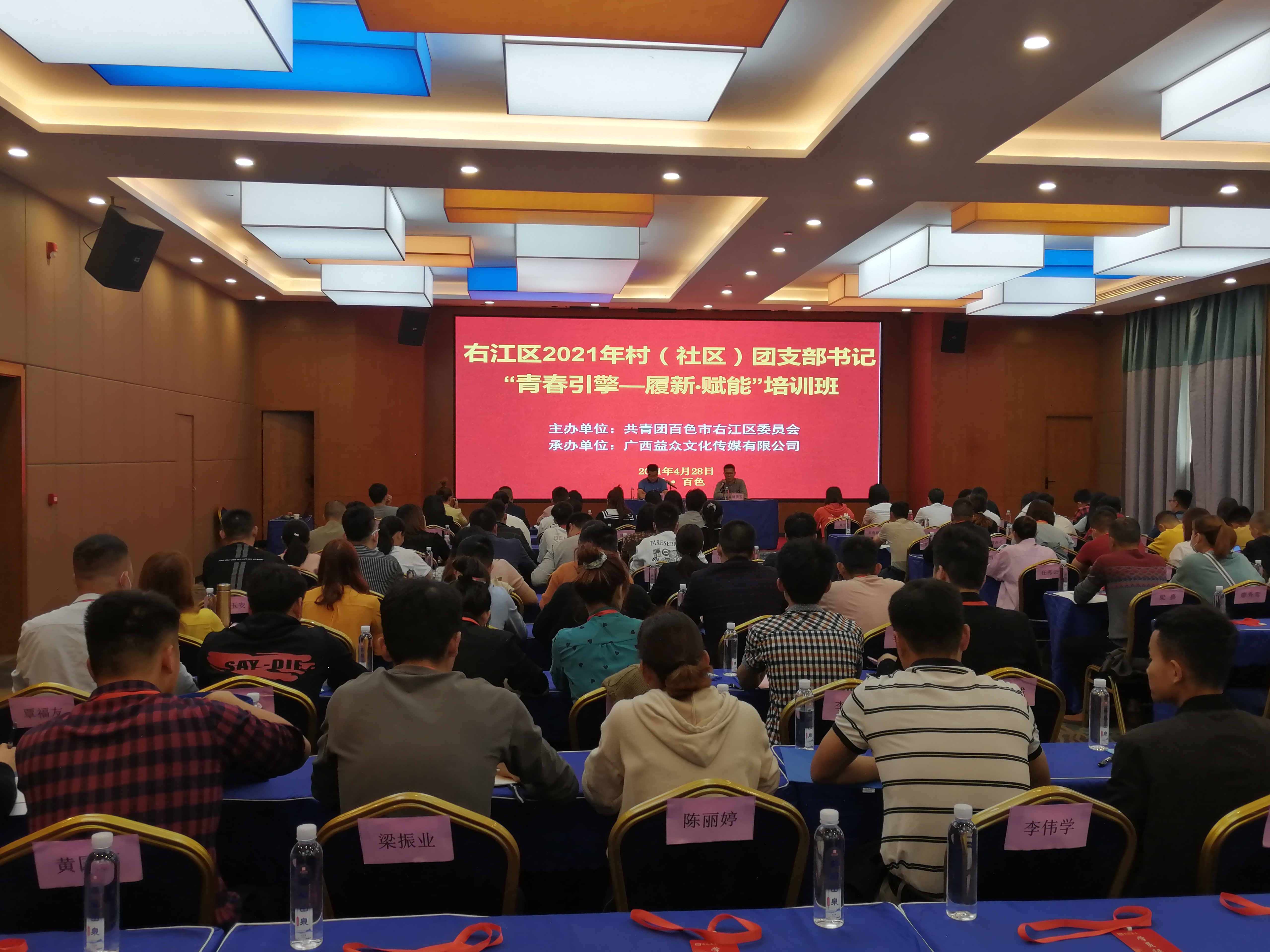 ????????為進(jìn)一步提升各村(社區(qū))團(tuán)支部書記履職能力,增強(qiáng)團(tuán)員隊(duì)伍建設(shè),4月28日至30日,共青團(tuán)百色市右江區(qū)委員會(huì)主辦,廣西益眾文化傳媒有限公司承辦了右江區(qū)2021年村(社區(qū))團(tuán)支部書記“青春引擎—履新·賦能”培訓(xùn)班,來自右江區(qū)各村(社區(qū))團(tuán)支部書記共一百多人參加本期培訓(xùn)。