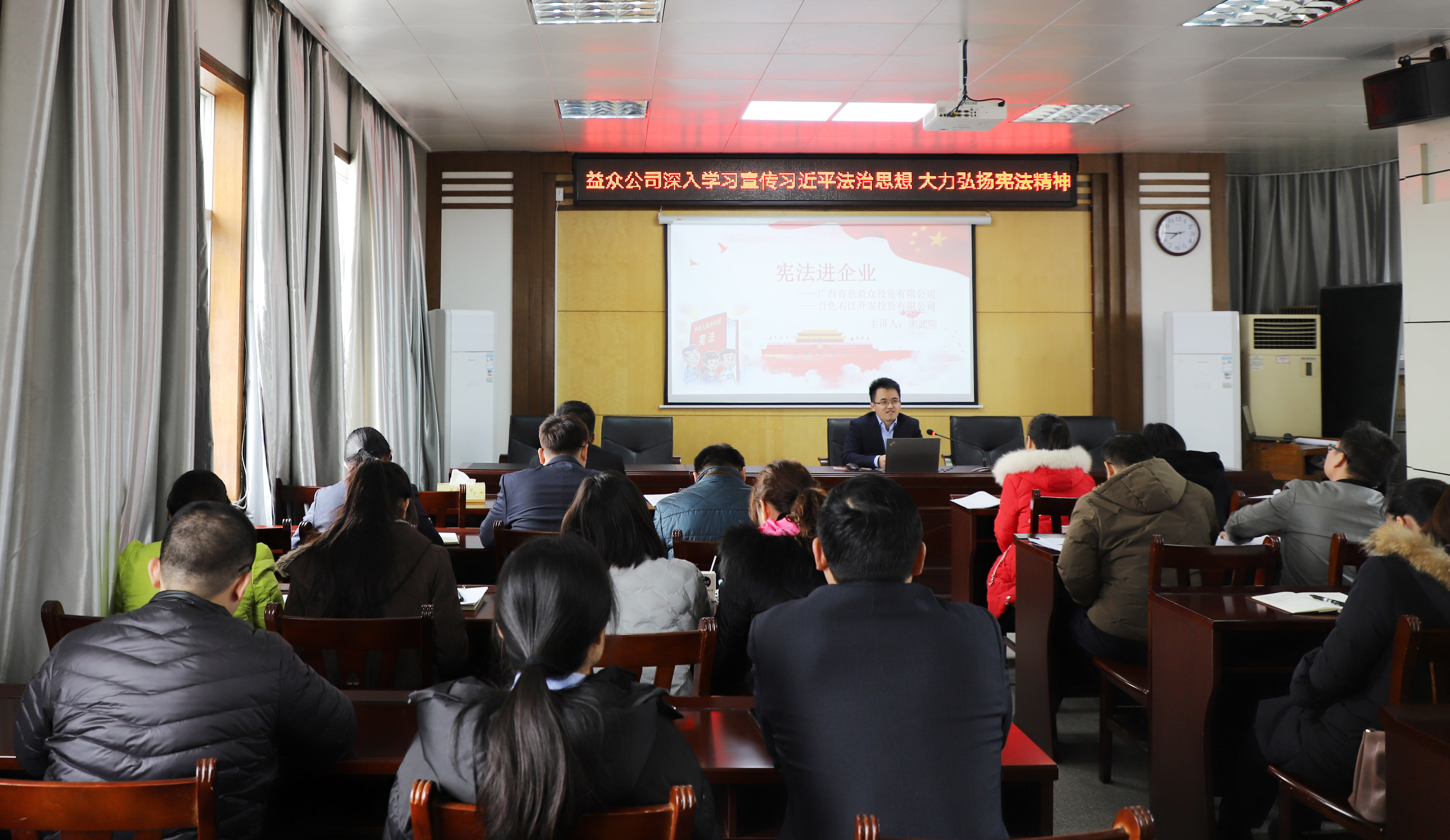 ????????為貫徹落實(shí)2020年百色市右江區(qū)“憲法宣傳周”活動(dòng)的有關(guān)工作部署,營(yíng)造良好的法治氛圍,弘揚(yáng)憲法精神、維護(hù)憲法權(quán)威,按照《右江區(qū)2020年憲法進(jìn)機(jī)關(guān)活動(dòng)方案》要求,近日,益眾公司黨支部組織領(lǐng)導(dǎo)干部、黨員職工開展“憲法進(jìn)企業(yè)”學(xué)習(xí)宣傳活動(dòng),深入學(xué)習(xí)宣傳習(xí)近平法治思想,大力弘揚(yáng)憲法精神,積極引導(dǎo)員工尊法、學(xué)法、守法、用法,自覺尊崇憲法、維護(hù)憲法,深入推進(jìn)全面依法治企進(jìn)程。