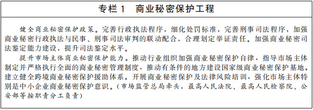健全知識產(chǎn)權(quán)法律法規(guī)。開展知識產(chǎn)權(quán)基礎(chǔ)性法律研究。統(tǒng)籌推進專利法、商標法、著作權(quán)法、反壟斷法、科學(xué)技術(shù)進步法、電子商務(wù)法等相關(guān)法律法規(guī)的修改完善。加強地理標志、商業(yè)秘密等領(lǐng)域立法,出臺商業(yè)秘密保護規(guī)定。完善集成電路布圖設(shè)計法規(guī)。推進修訂植物新品種保護條例。制定中醫(yī)藥傳統(tǒng)知識保護條例。完善與國防建設(shè)相銜接的知識產(chǎn)權(quán)法律制度。全面建立并實施知識產(chǎn)權(quán)侵權(quán)懲罰性賠償制度,加大損害賠償力度。研究建立健全符合知識產(chǎn)權(quán)審判規(guī)律的特別程序法律制度。適應(yīng)科技進步和經(jīng)濟社會發(fā)展需要,依法及時推動知識產(chǎn)權(quán)法律法規(guī)立改廢釋。(中央宣傳部、最高人民法院、最高人民檢察院、科技部、工業(yè)和信息化部、司法部、農(nóng)業(yè)農(nóng)村部、商務(wù)部、國家衛(wèi)生健康委、市場監(jiān)管總局、國家國防科工局、國家林草局、國家中醫(yī)藥局、國家知識產(chǎn)權(quán)局、中央軍委裝備發(fā)展部等按職責分工負責)