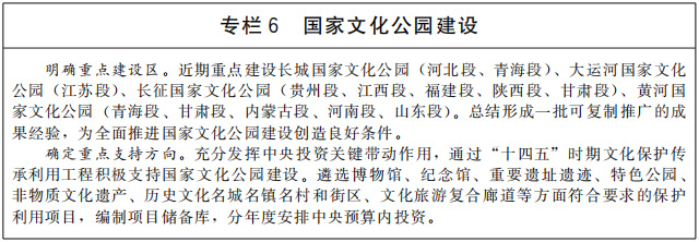 推進國家文化公園建設,生動呈現(xiàn)中華文化的獨特創(chuàng)造、價值理念和鮮明特色,樹立和突出各民族共享的中華文化符號和中華民族形象,探索新時代文物和文化資源保護傳承利用新路徑,把國家文化公園建設成為傳承中華文明的歷史文化走廊、中華民族共同精神家園、提升人民生活品質(zhì)的文化和旅游體驗空間。加快建設長城、大運河、長征、黃河等國家文化公園,整合具有突出意義、重要影響、重大主題的文物和文化資源,重點建設管控保護、主題展示、文旅融合、傳統(tǒng)利用四類主體功能區(qū),實施保護傳承、研究發(fā)掘、環(huán)境配套、文旅融合、數(shù)字再現(xiàn)五大工程,突出“萬里長城”“千年運河”“兩萬五千里長征”“九曲黃河”整體辨識度。推進優(yōu)質(zhì)文化旅游資源一體化開發(fā),科學規(guī)劃、開發(fā)文化旅游產(chǎn)品和商品。推出參觀游覽聯(lián)程聯(lián)運經(jīng)典線路,開展整體品牌塑造和營銷推介。