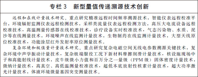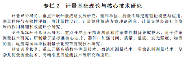 (七)加強關(guān)鍵共性計量技術(shù)研究。加快開展量熱技術(shù)、數(shù)字化模擬測量技術(shù)、工況環(huán)境監(jiān)測技術(shù)等基礎(chǔ)共性計量技術(shù)研究。加強智能化計量校準技術(shù)研究,開展計量軟件功能安全測評等關(guān)鍵技術(shù)研究和應(yīng)用。加強高精度、集成化、微型化、智能化的新型傳感技術(shù)研究,攻克高端計量測試儀器設(shè)備核心關(guān)鍵部件和技術(shù)。建立有利于計量新技術(shù)、新方法向產(chǎn)業(yè)轉(zhuǎn)移的服務(wù)平臺。